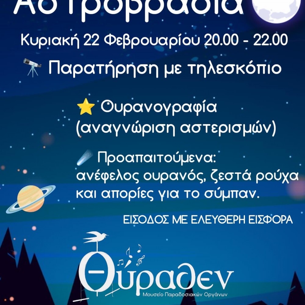 Αστρο-βραδιά στις 22/2 από τις 20:00 έως τις 22:00 με τον φυσικό-αστρονόμο Τηλέμαχο Αθανασιάδη!!