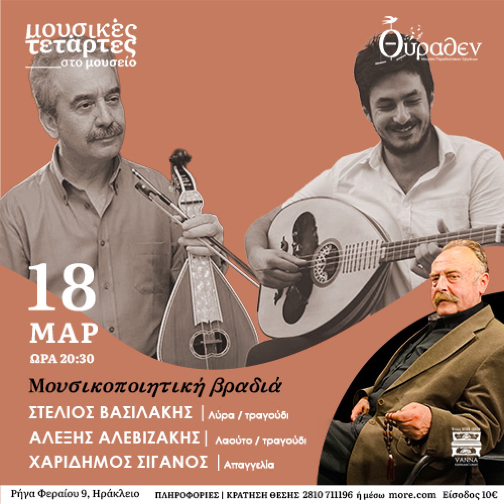 Την Τετάρτη 18/3 στο μουσείο Θύραθεν και ώρα 20:30 θα πραγματοποιηθεί μουσικοποιητική βραδιά με τους: