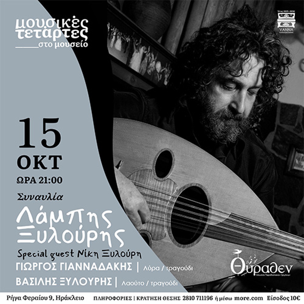 Ο Λάμπης Ξυλούρης έρχεται στις 15 Οκτωβρίου και ώρα 20:30 στον ζεστό χώρο του Μουσείου Θύραθεν.
