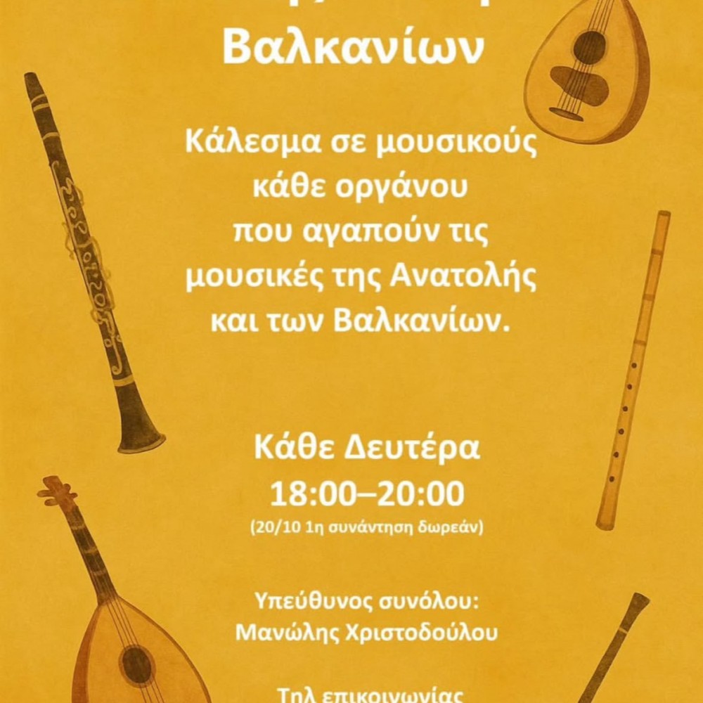 Το Σύνολο Μουσικών της Ανατολικής Μεσογείου & των Βαλκανίων ανοίγει τις πόρτες του σε μουσικούς κάθε οργάνου που αγαπούν τις μουσικές της Ανατολής και των Βαλκανίων.